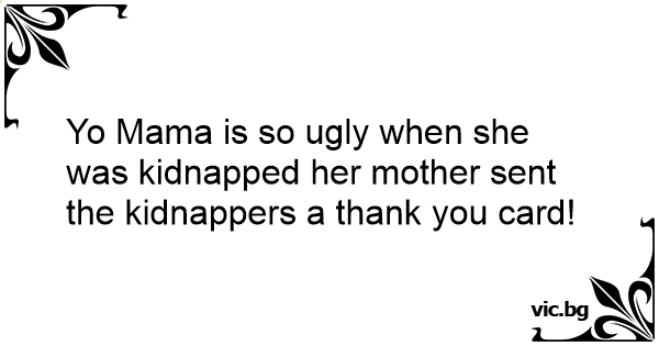 Yo Mama is so ugly when she was kidnapped her mother sent the kidnappers a thank you card!