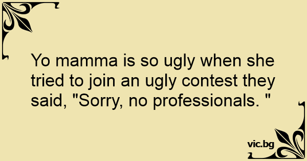 Yo mamma is so ugly when she tried to join an ugly contest they said, "Sorry, no professionals. "