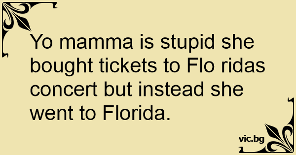 Yo mamma is sтuрid she bought tickets to Flo ridas concert but instead she went to Florida.