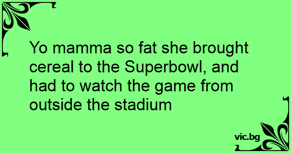Yo mamma so fат she brought cereal to the Superbowl, and had to watch the game from outside the stadium