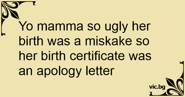 Yo mamma so ugly her birth was a miskake so her birth certificate was an apology letter