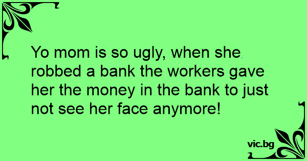 Yo mom is so ugly, when she robbed a bank the workers gave her the money in the bank to just not see her face anymore!