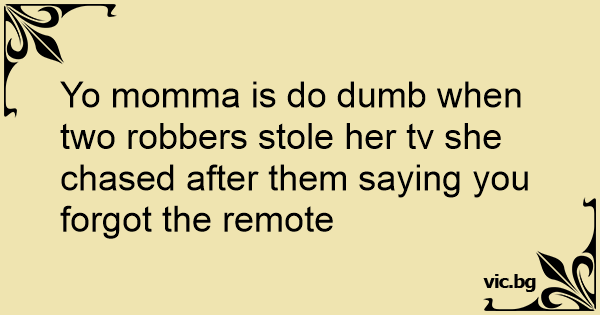 Yo momma is do dumb when two robbers stole her tv she chased after them saying you forgot the remote