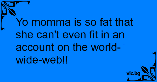 Yo momma is so fат that she can't even fit in an account on the world-wide-web!!