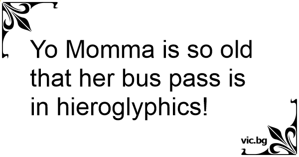 Yo Momma is so old that her bus pass is in hieroglyphics!