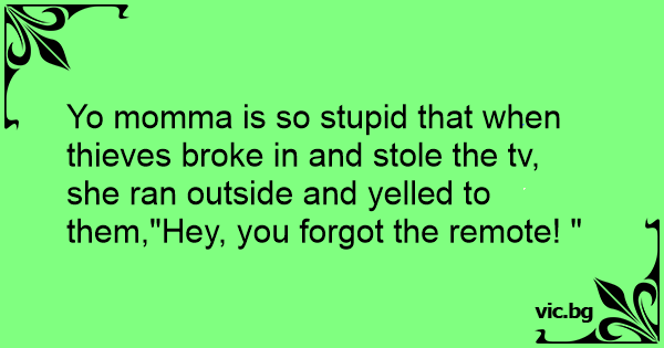 Yo momma is so sтuрid that when thieves broke in and stole the tv, she ran outside and yelled to them,"Hey, you forgot the remote! "