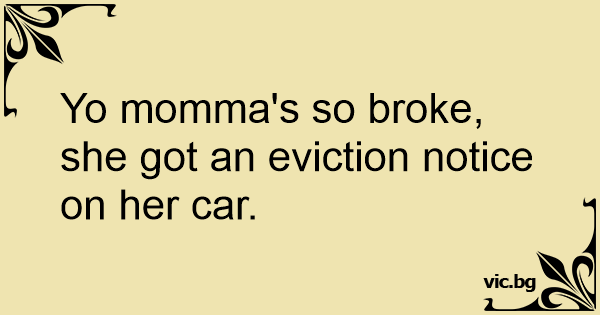 Yo momma's so broke, she got an eviction notice on her car.