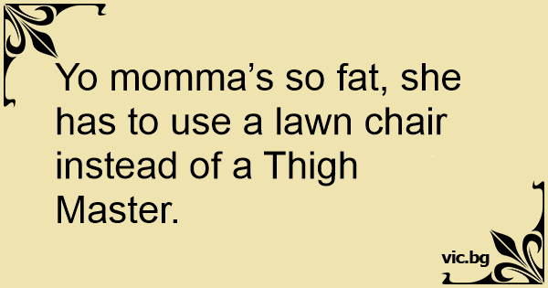 Yo momma’s so fат, she has to use a lawn chair instead of a Thigh Master.