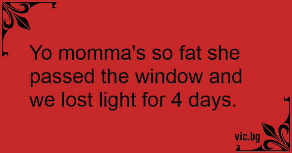 Yo momma's so fат she passed the window and we lost light for 4 days.