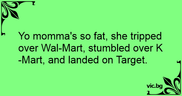 Yo momma's so fат, she tripped over Wal-Mart, stumbled over K-Mart, and landed on Target.