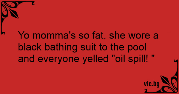 Yo momma's so fат, she wore a black bathing suit to the pool and everyone yelled "oil spill! "