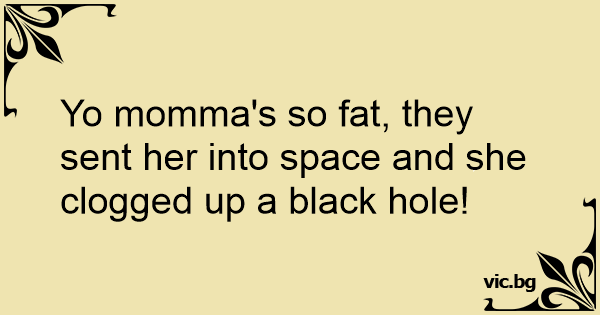 Yo momma's so fат, they sent her into space and she clogged up a black hole!