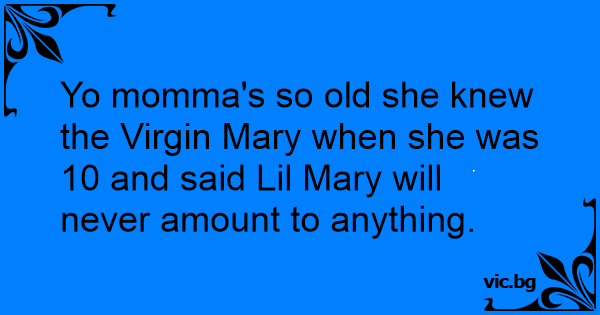 Yo momma's so old she knew the Virgin Mary when she was 10 and said Lil Mary will never amount to anything.