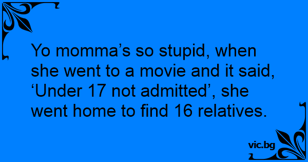 Yo momma’s so sтuрid, when she went to a movie and it said, ‘Under 17 not admitted’, she went home to find 16 relatives.