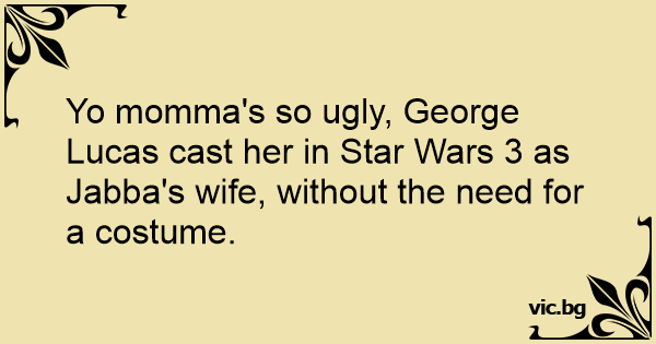 Yo momma's so ugly, George Lucas cast her in Star Wars 3 as Jabba's wife, without the need for a costume.