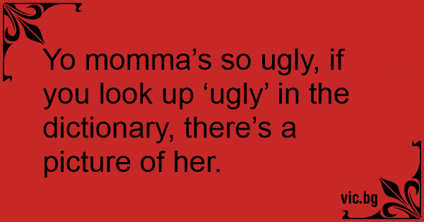 Yo momma’s so ugly, if you look up ‘ugly’ in the dictionary, there’s a picture of her.