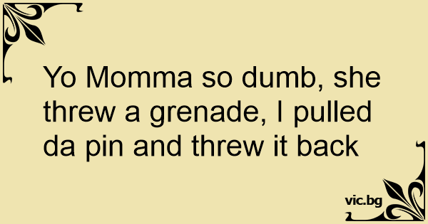 Yo Momma so dumb, she threw a grenade, I pulled da pin and threw it back
