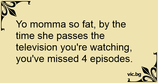 Yo momma so fат, by the time she passes the television you're watching, you've missed 4 episodes.