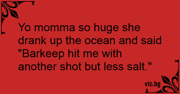 Yo momma so huge she drank up the ocean and said "Barkeep hit me with another shot but less salt."