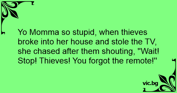 Yo Momma so sтuрid, when thieves broke into her house and stole the TV, she chased after them shouting, ''Wait!