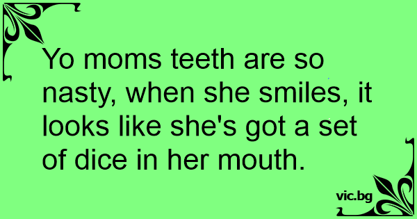 Yo moms teeth are so nasty, when she smiles, it looks like she's got a set of dice in her mouth.
