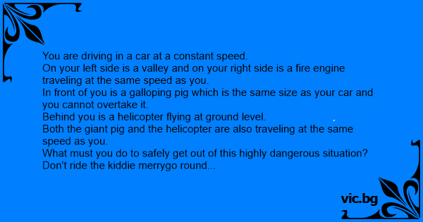 In front of you is a galloping pig which is the same size as your car and you cannot overtake it.