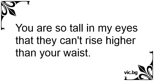 You are so tall in my eyes that they can't rise higher than your waist.