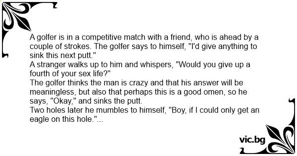 As the golfer walks to the club house, the stranger walks alongside and says, "You know, I've really not been fair with you because you don't know who I am. I'm the devil, and from now on you will have no sеx life."
