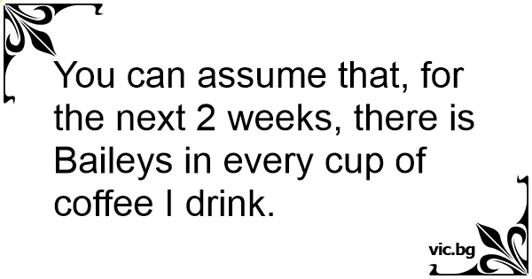 You can assume that, for the next 2 weeks, there is Baileys in every cup of coffee I drink.