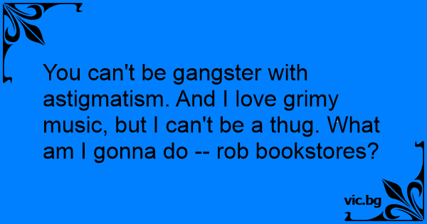 You can't be gangster with astigmatism. And I love grimy music, but I can't be a тhug. What am I gonna do -- rob bookstores?