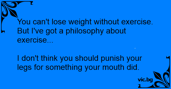 You can't lose weight without exercise. But I've got a philosophy about exercise...