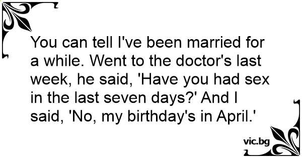 You can tell I've been married for a while. Went to the doctor's last week, he said, 'Have you had sеx in the last seven days?' And I said, 'No, my birthday's in April.'