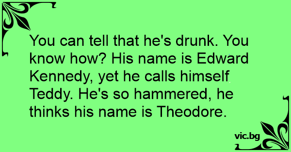 You can tell that he's drunк. You know how? His name is Edward Kennedy, yet he calls himself Teddy. He's so hammered, he thinks his name is Theodore.