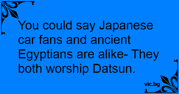 You could say Japanese car fans and ancient Egyptians are alike- They both worship Datsun.