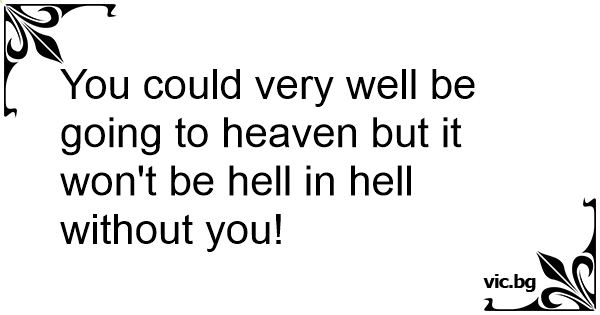 You could very well be going to heaven but it won't be hеll in hеll without you!