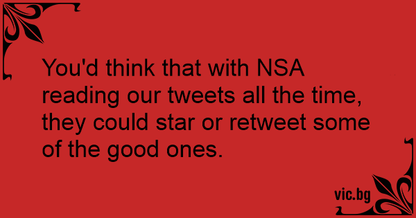 You'd think that with NSA reading our tweets all the time, they could star or retweet some of the good ones.