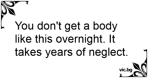 You don't get a body like this overnight. It takes years of neglect.