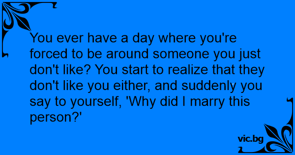 You ever have a day where you're forced to be around someone you just don't like? You start to realize that they don't like you either, and suddenly you say to yourself, 'Why did I marry this person?'