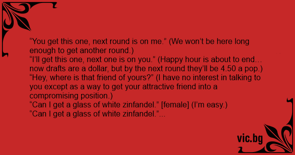 “I’ll get this one, next one is on you.” (Happy hour is about to end…now drafts are a dollar, but by the next round they’ll be 4.50 a pop.)