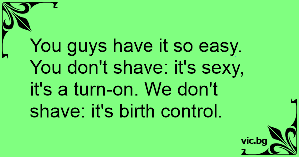 You guys have it so easy. You don't shave: it's sеxy, it's a turn-on. We don't shave: it's birth control.