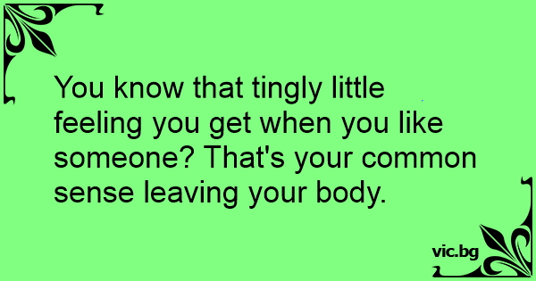 You know that tingly little feeling you get when you like someone? That's your common sense leaving your body.