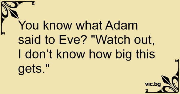 You know what Adam said to Eve? "Watch out, I don’t know how big this gets."