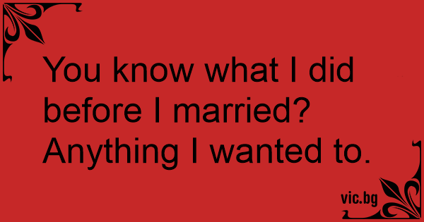 You know what I did before I married? Anything I wanted to.