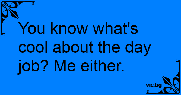 You know what's cool about the day job? Me either.