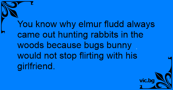 You know why elmur fludd always came out hunting rabbits in the woods because bugs bunny would not stop flirting with his girlfriend.