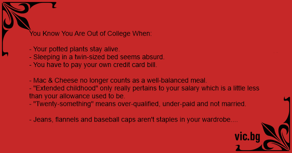 You Know You Are Out of College When: