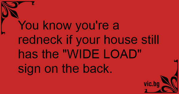 You know you're a redneck if your house still has the "WIDE LOAD" sign on the back.