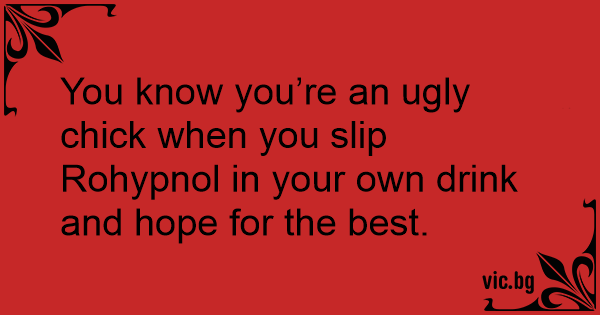 You know you’re an ugly chick when you slip Rohypnol in your own drink and hope for the best.