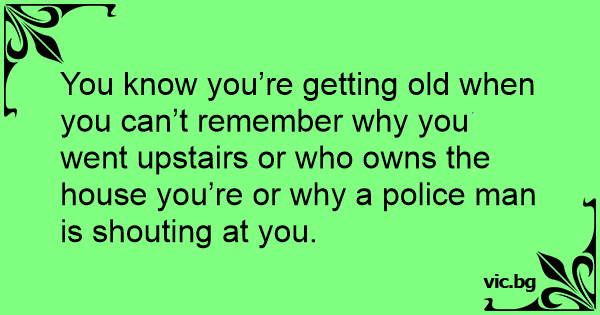 You know you’re getting old when you can’t remember why you went upstairs or who owns the house you’re or why a police man is shouting at you.