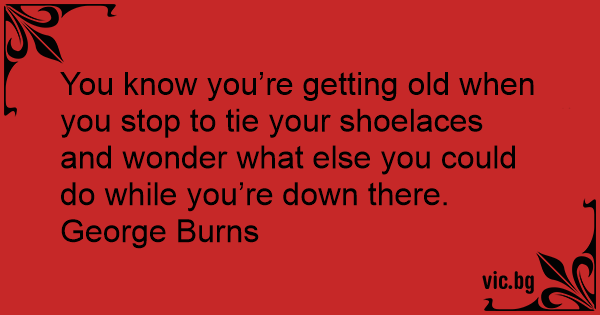 You know you’re getting old when you stop to tie your shoelaces and wonder what else you could do while you’re down there.